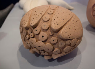 Druga rzecz to szal, który kiedyś pokazywałam. Wówczas był biały, ale ja miałam ogromną ochotę go ufarbować. Najpierw zastosowałam farbowanie na zimno, ale efekt zupełnie mnie nie zadowolił. Potem użyłam farb do wełny na gorąco i ostatecznie wyszło tak jak poniżej. Kompletnie inaczej niż zamierzałam, ale chyba ostatecznie nie najgorzej... Ja na szczęście należę do osób, które za bardzo nie przywiązują się do swoich wizji i jak wychodzi inaczej, nie rozpaczam. Po części nauczyła mnie tego ceramika.